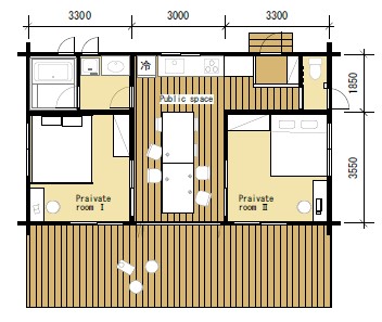- 延床面積15.7坪(居室:35.64㎡(5.4坪)×2部屋=35.64㎡(10.8坪)、インナーデッキ:16.20㎡(4.9坪))