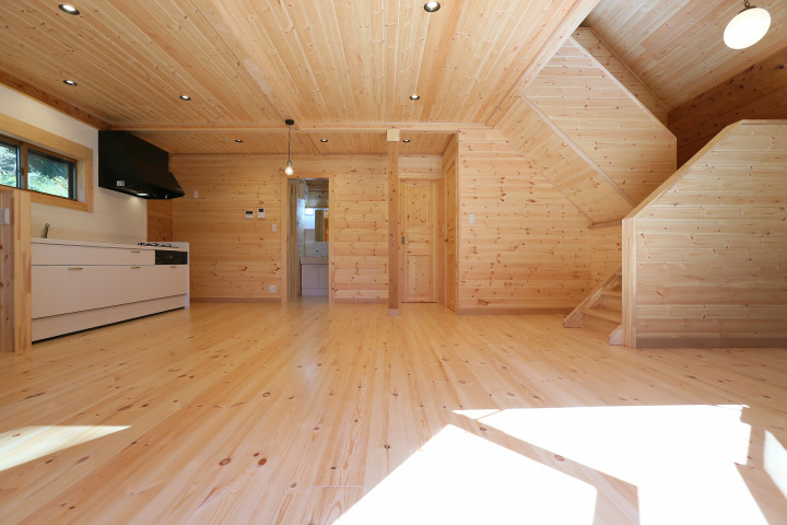 まるで森の中にいるように、木に囲まれた心地よい室内空間。装飾を削ぎ落し、シンプルを突き詰めた木の家の原点。そこには、自然の恵みにあふれた、自由な暮らしが広がります。