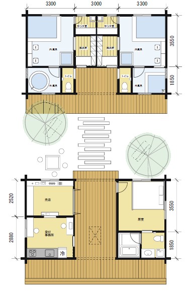 - 延床面積15.7坪(居室:35.64㎡(5.4坪)×2部屋=35.64㎡(10.8坪)、インナーデッキ:16.20㎡(4.9坪))