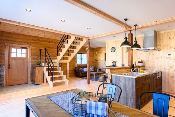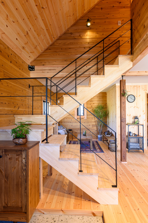 まるで森の中にいるように、木に囲まれた心地よい室内空間。装飾を削ぎ落し、シンプルを突き詰めた木の家の原点。そこには、自然の恵みにあふれた、自由な暮らしが広がります。